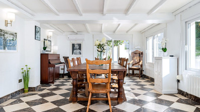 The upper floor boasts a generous second lounge filled with natural light from large windows, creating a relaxing space that opens onto a spacious terrace where you can enjoy the sea air. This level also includes the master bedroom with its own en-suite bathroom and walk-in dressing area, along with further well-proportioned bedrooms and bathrooms for family and guests.